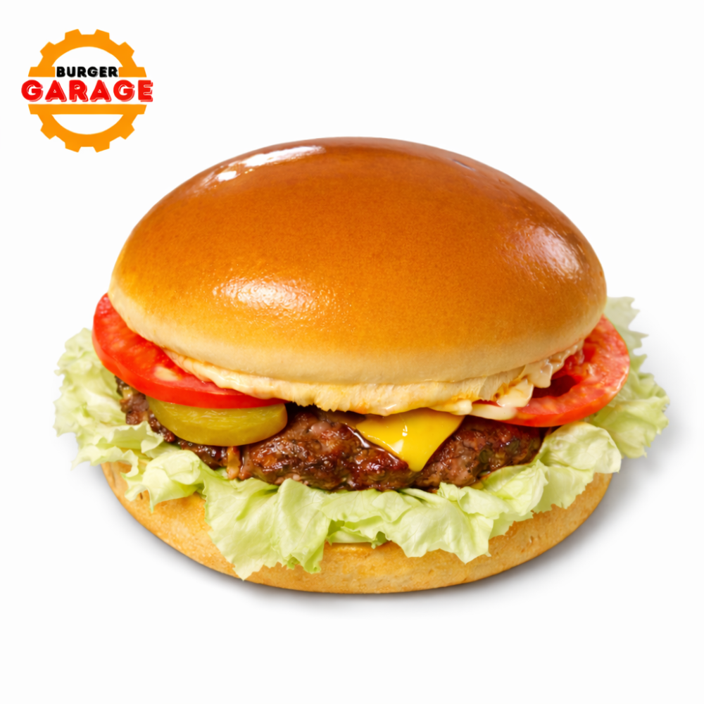 - Чизбургер — сочная говяжья котлета с плавленым сыром, свежими помидорами и айсбергом, подается в мягкой булочке.